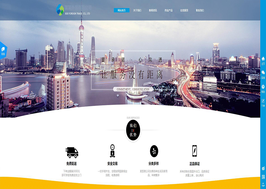 網(wǎng)站模板名稱:(帶手機版數(shù)據(jù)同步)自適應(yīng)貿(mào)易出口類藍色網(wǎng)站模板